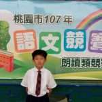 107年9月15日為桃園市國語文競賽決賽,來自全市的選手皆為箇中好手。有得師生經過半年的努力培訓,果然不負眾望,奪得多項佳績:國小組朗讀第二名 — 邱育洋(指導教師:彭秀蓉、張雅淳)、國中組朗讀第三名 — 張詠詠(指導教師:王子夫)、國中組作文第三名 — 林承慧(指導教師:蘇郁雯)。此外,王子夫老師除了培訓學生得獎外,本身也奪得中學教師組作文第二名的佳績。