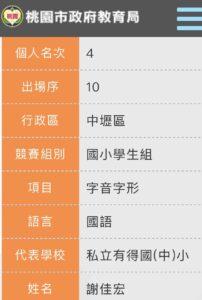 112學 年度中壢區語文競賽成績如下: