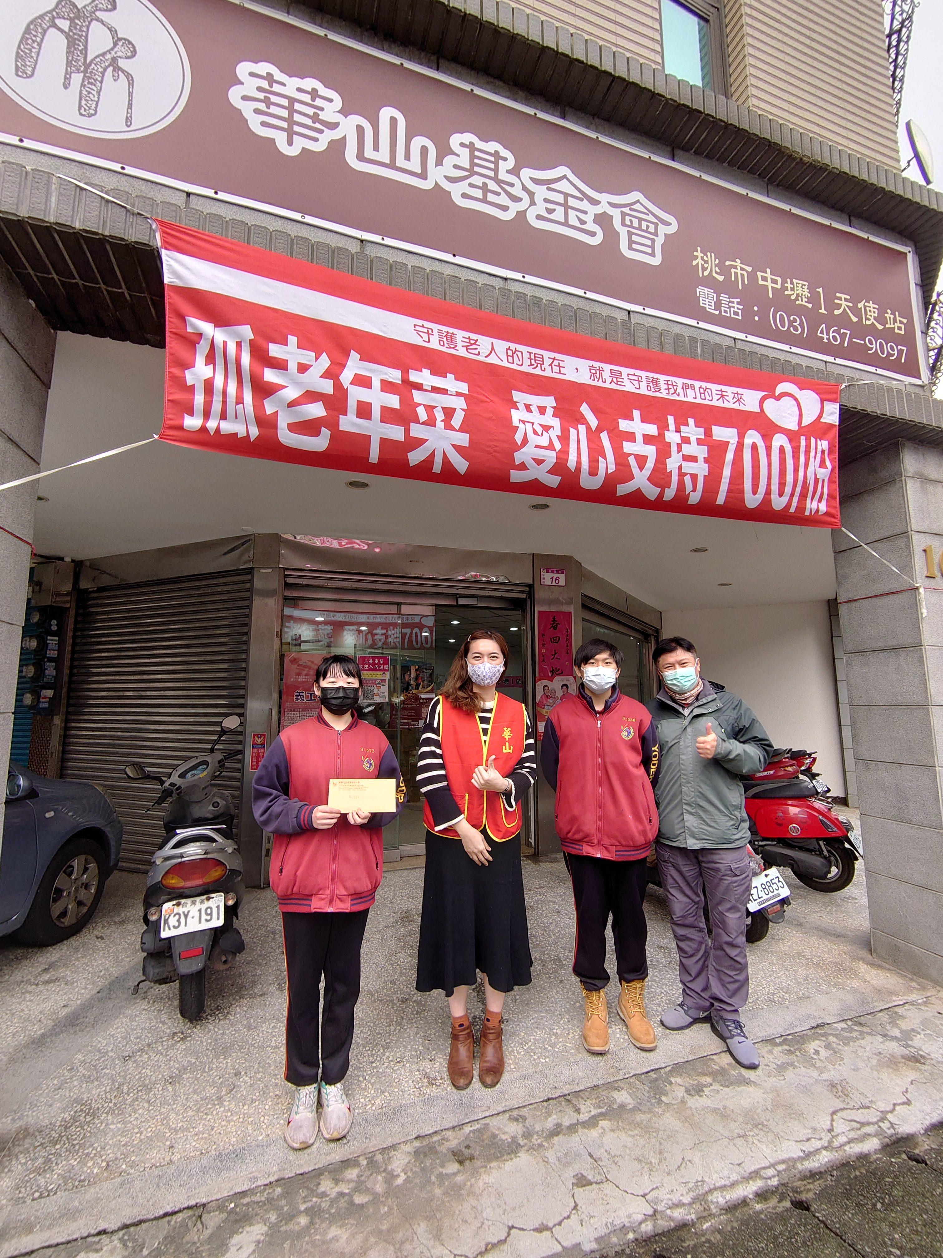 2022/01/12(三)下午,學生自治市市長8A王芷嫈、副市長8B楊翔鈞,代表本校全體學生至「華山基金會」和「陽光基金會」,捐贈本校2021/12/25聖誕園遊會的盈餘,這些公益基金來自全校大家的共同努力,是大家將滿滿的愛,給予需要幫助的人們~