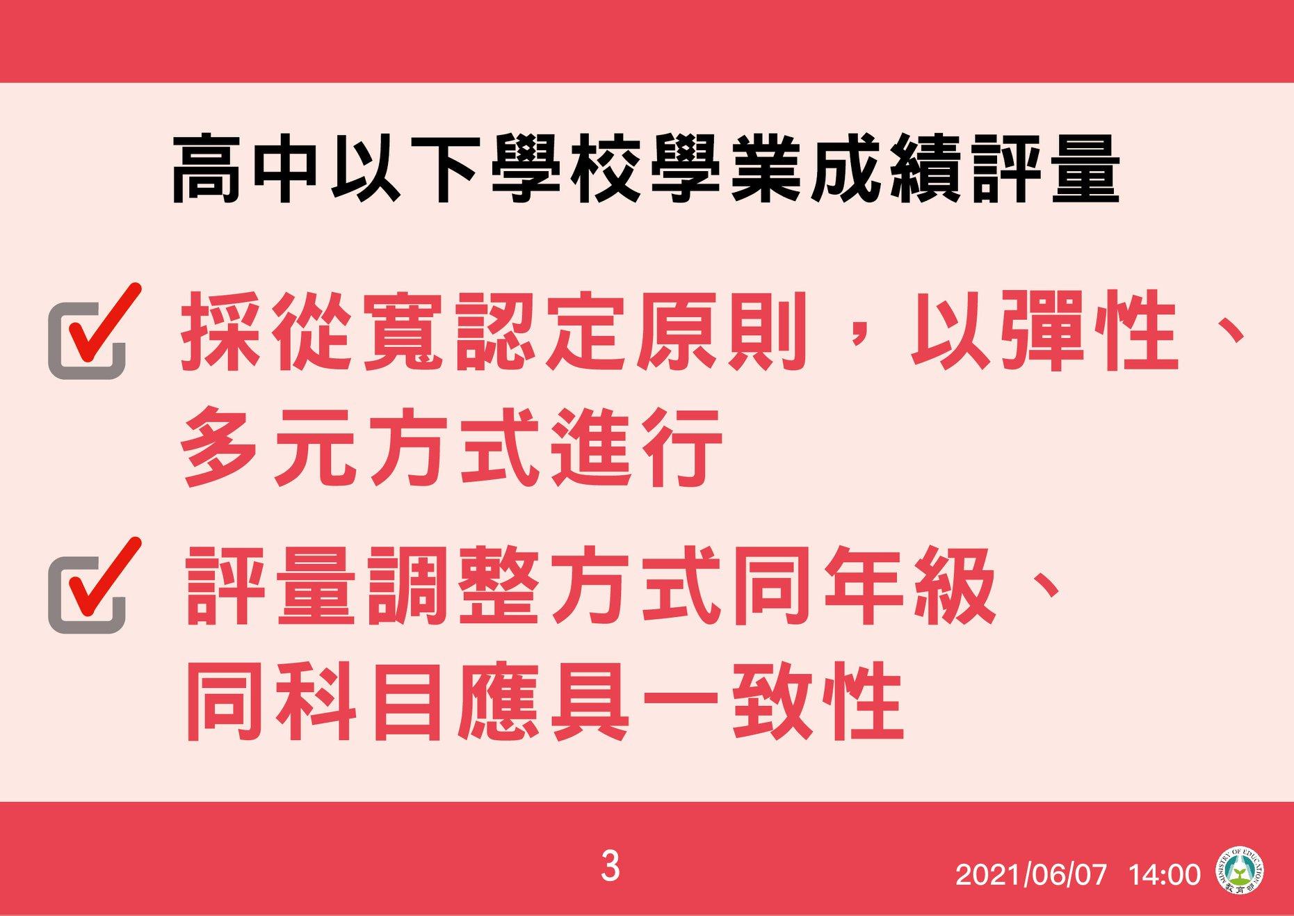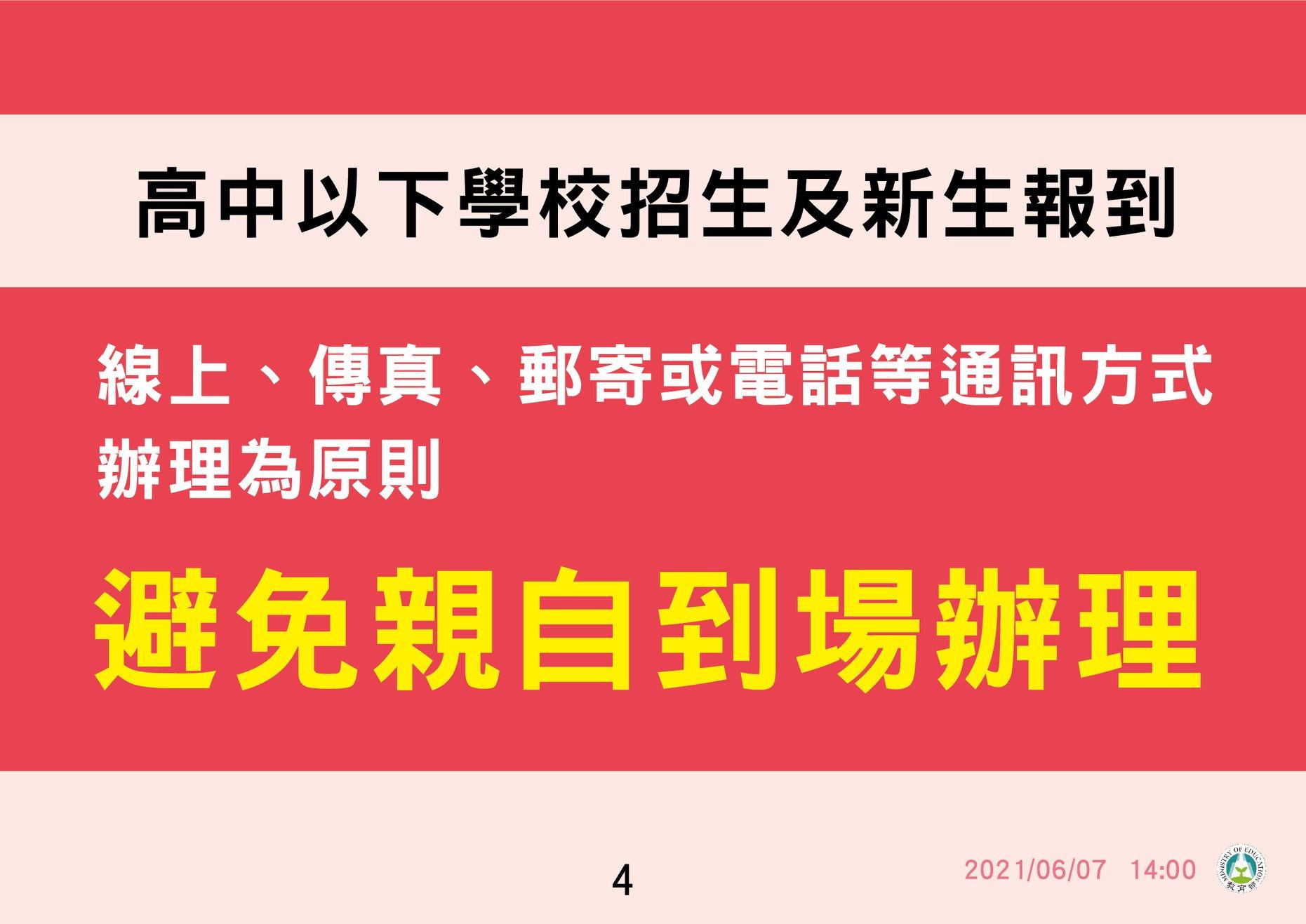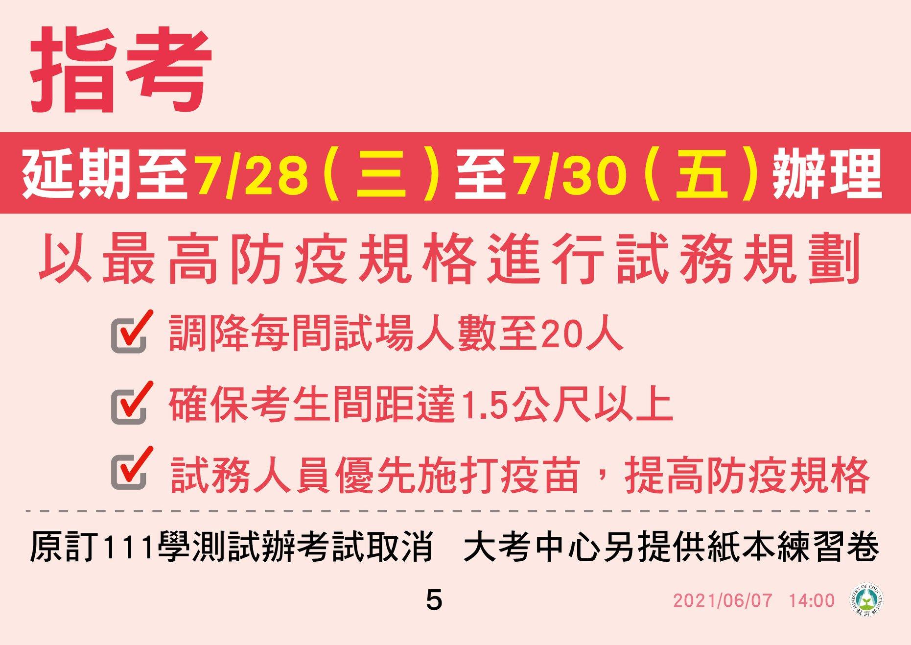 3.110年6月7日全台三級警戒延長至6月28日,教育部宣布全國各級學校和公私立幼兒園停止到校上課,延長至7月2日(五)