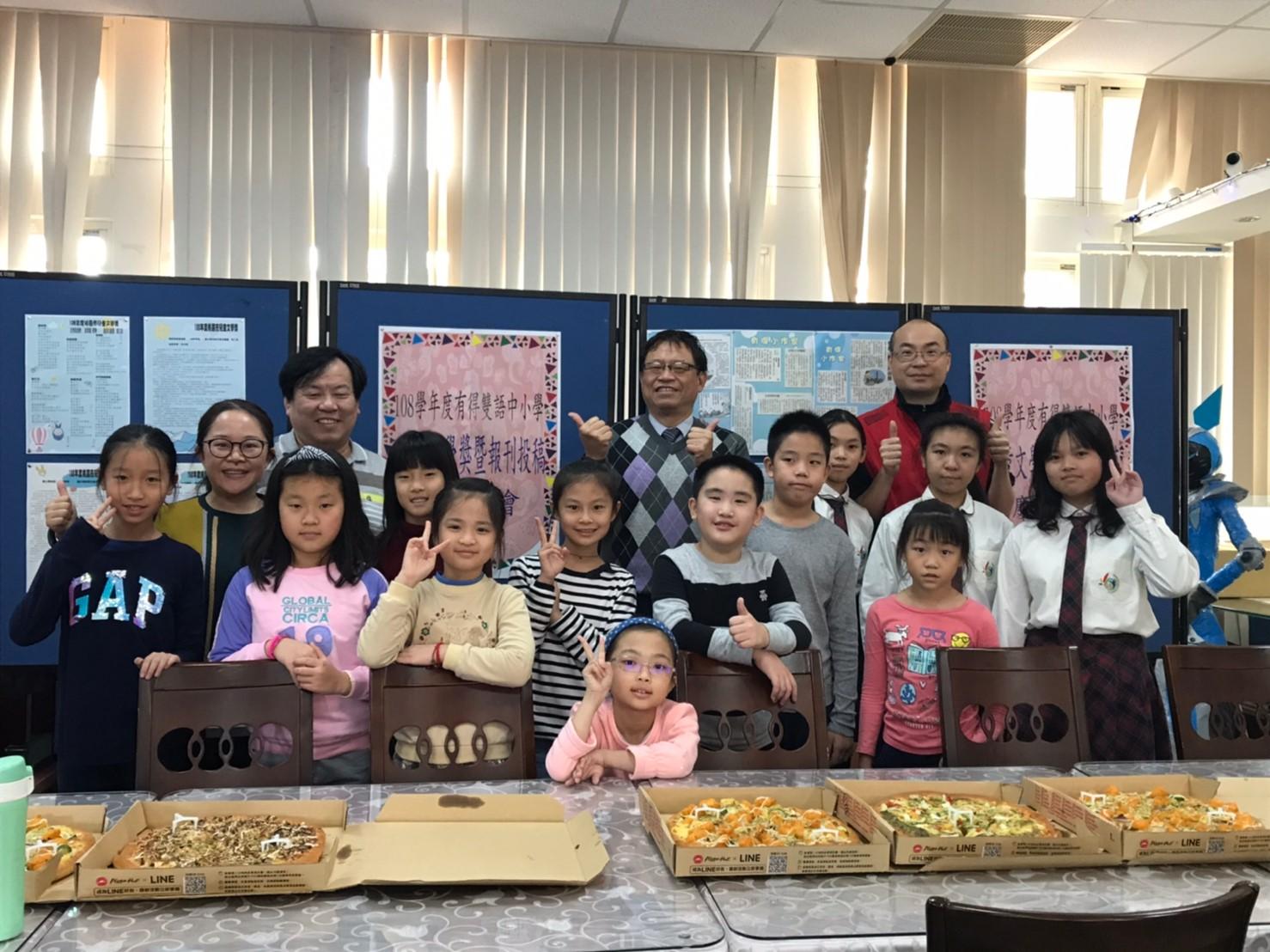 餐會後,榮獲兒童文學獎的黃秀君老師(童詩及童謠組第三名)以及六年級學生:張詠晴(國小學生散文高年級組第二名)、許芳瑜(國小學生散文高年級組第二名)、汪語欣(國小學生散文高年級組佳作)前往由教育局主辦的頒獎典禮現場,現場來自全市的優秀創作者,教育局長官也勉勵得獎者可以在文學的路上繼續耕耘。