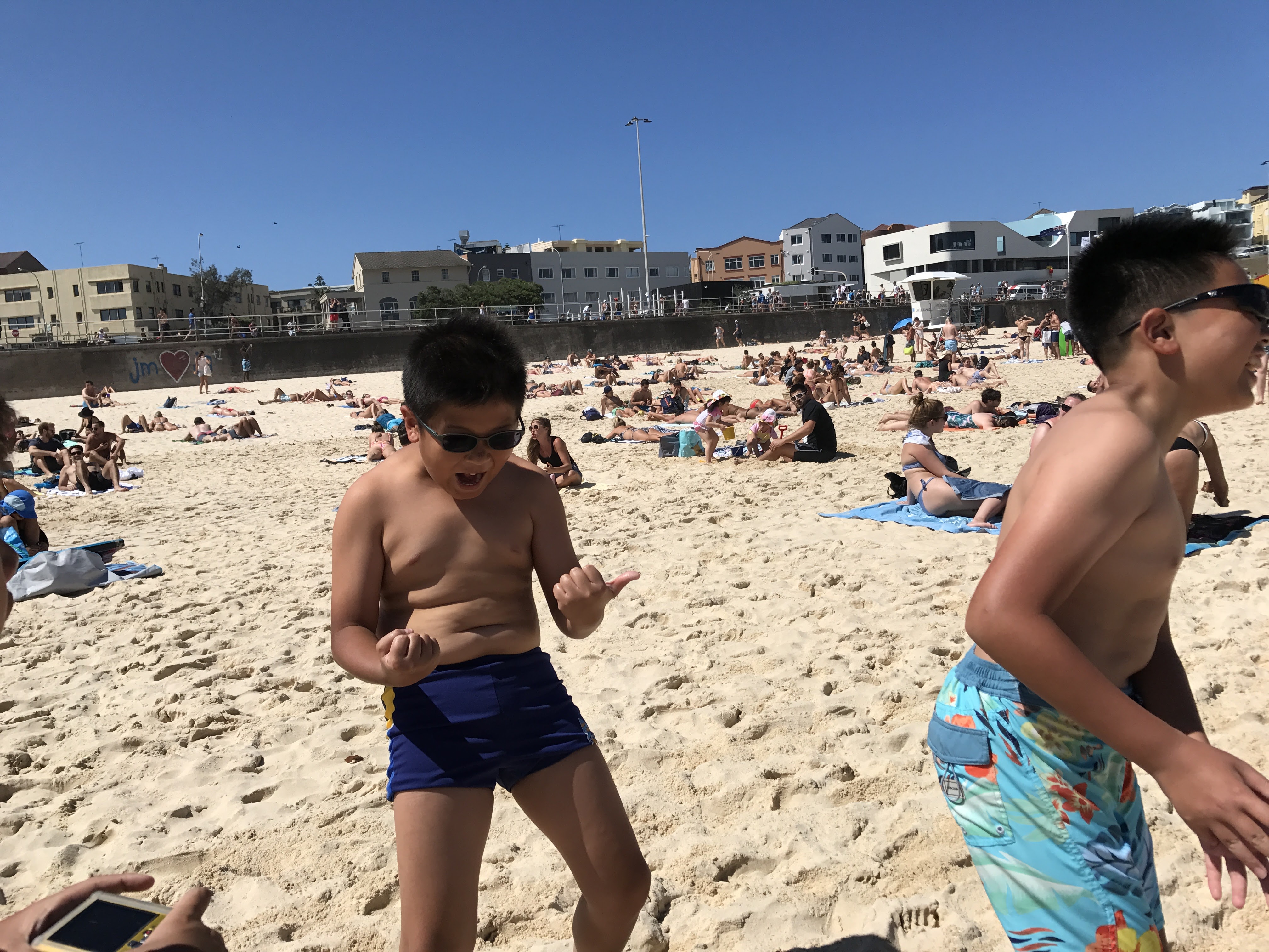 離開藍山國家公園後,有得一行改往雪梨市區的方向前進。中午在飯店附近的餐廳享用澳洲風味的牛排大餐。隨後,按照原計劃到訪兩個雪梨地區之名景點 — The Gap 和邦黛海灘(Bondi Beach)。全長約一公里的邦黛海灘可說是雪梨一帶人氣最旺的海灘。同學們還沒抵達定點,都已興奮不已。在海灘上,同學們一會兒玩水、一會兒玩沙,大夥都玩到忘我的境界。年紀較大的國中同學們則在微風輕拂下享受著溫和的日光浴。有得團隊在海灘上待了約兩小時才依依不捨的離開。