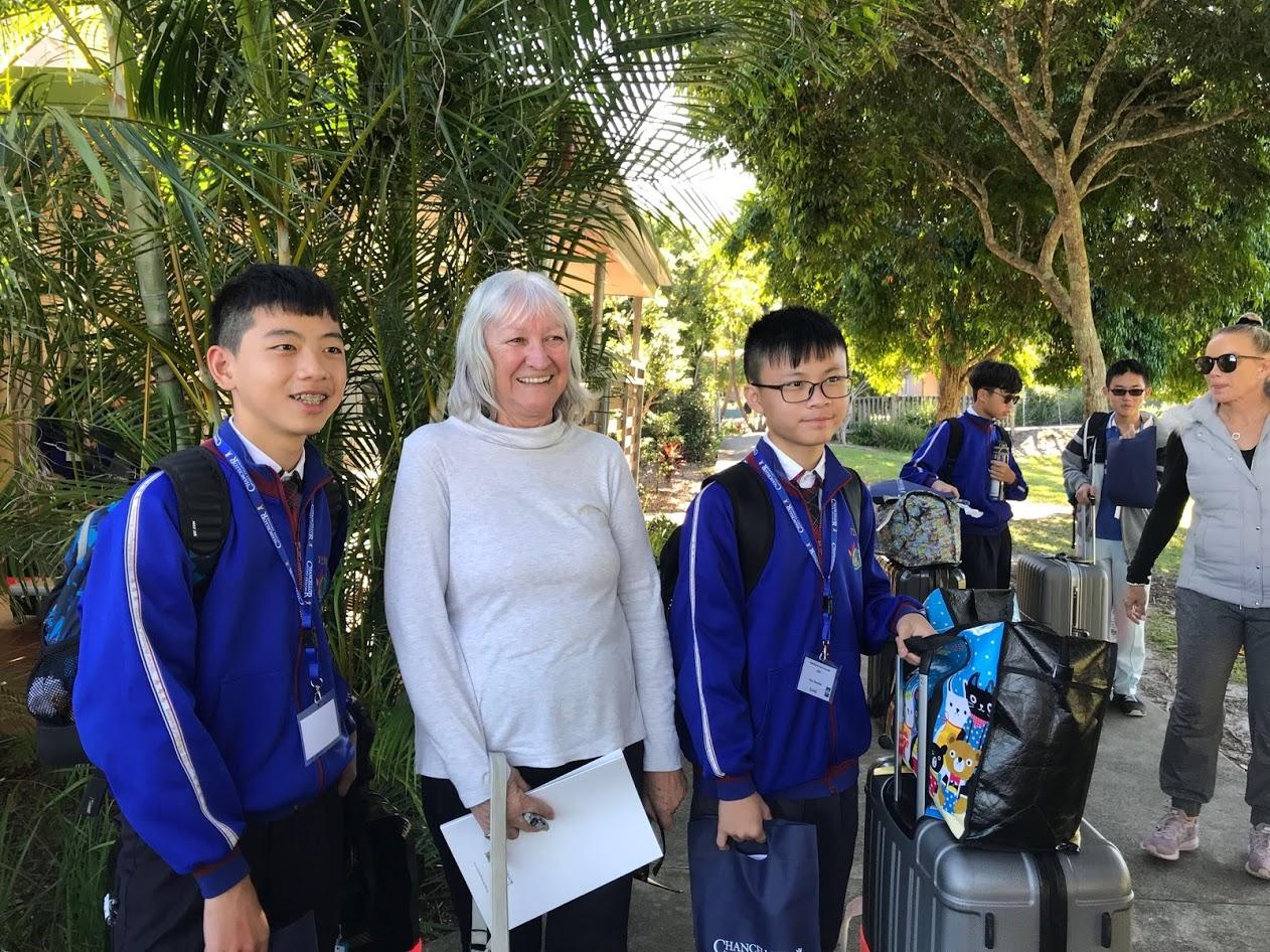 隨著船與車的接駁,時間來到了下午一點鐘左右,Chancellor State College (中學)的國際部學生和老師已經在人行道上迎接我們啦!他們幫忙提行李、親切的迎接大家。而Chancellor國際部(Global Schooling)的John主任也親自迎接。