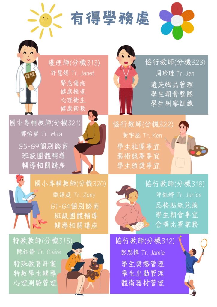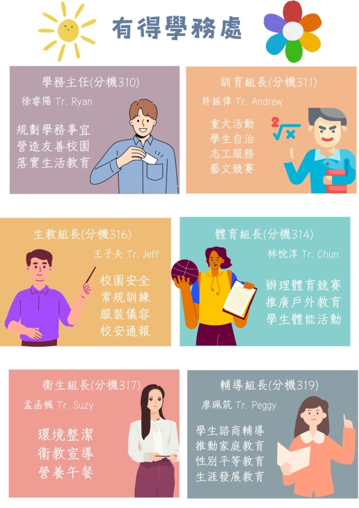 - 強化學生輔導體制、落實性別平等教育、推動生命教育相關活動、加強學校人權、法治、品德及公民教育實踐。